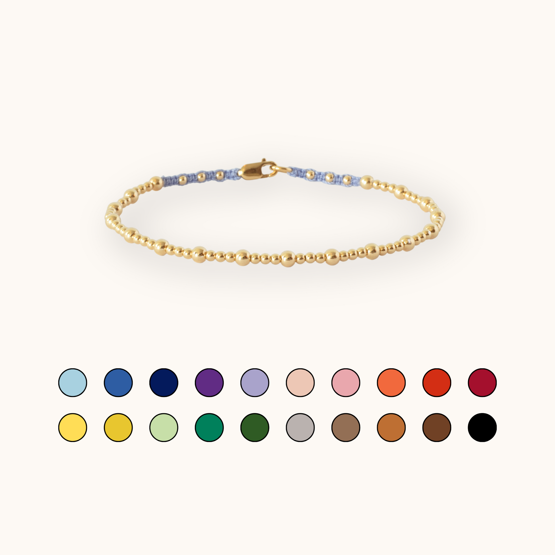 Now, choose your favorite color and create your own distinctive style. The clasp and beads are made of 14k/20 Gold Filled, ensuring a luxurious appearance and enduring quality that you can enjoy for years, if not your entire life. The bracelet is hand-knotted with super strong and silky thread, using a century-old macramé technique.