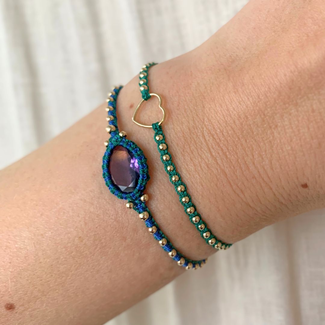Discover enduring luxury in our handmade jewelry collection. Each piece is meticulously crafted using a durable yet silky thread reminiscent of silk, complemented by gold filled accents, sterling silver components, and genuine gemstones. Our gemstones are carefully sourced and collected from certified suppliers, guaranteeing their authenticity and exquisite beauty. Elevate your style with our expertly curated materials, promising timeless elegance that will last a lifetime (with proper care). Read a full description here - quality & materials