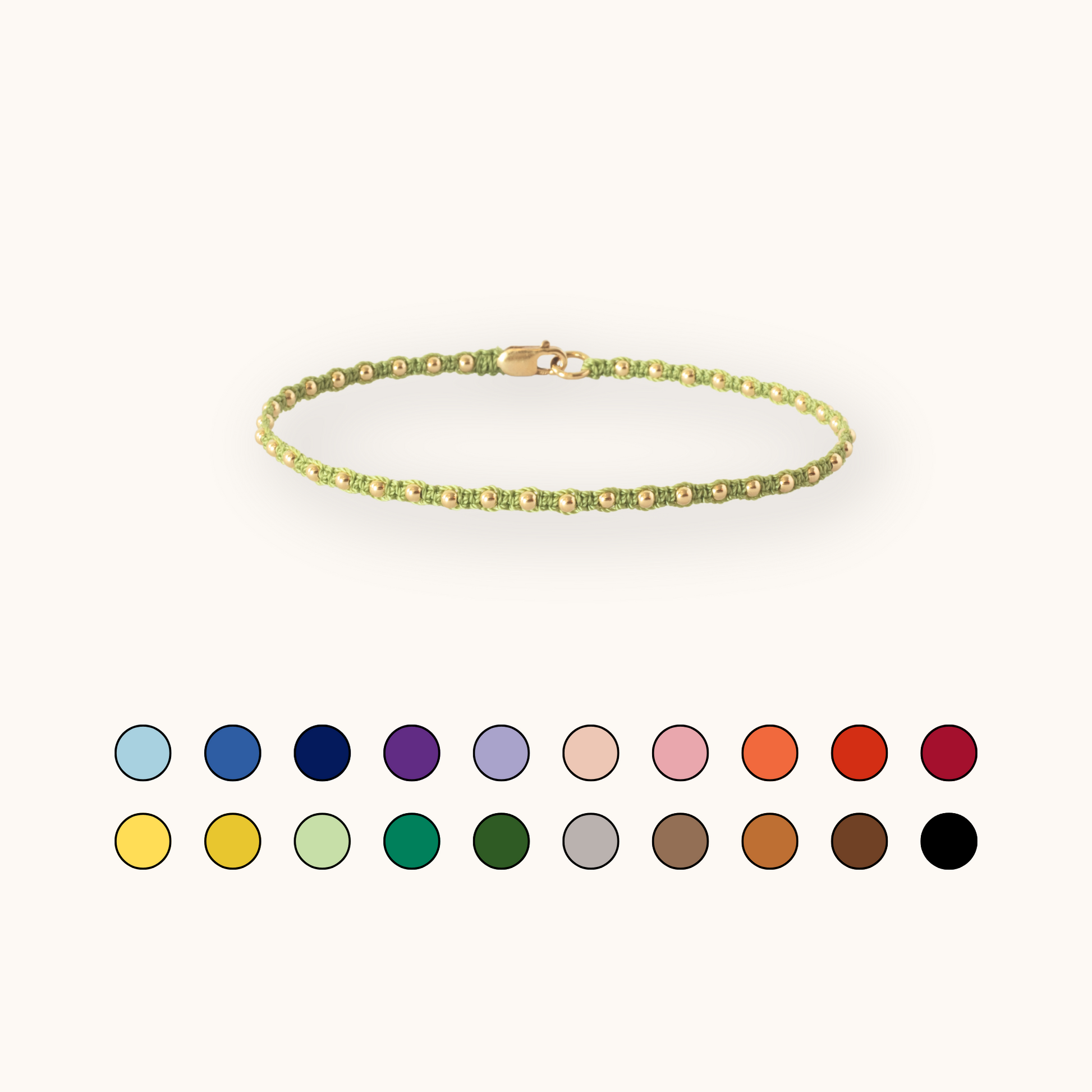 Now, choose your favorite color and create your own distinctive style. The clasp and beads are made of 14k/20 Gold Filled, ensuring a luxurious appearance and enduring quality that you can enjoy for years, if not your entire life. The bracelet is hand-knotted with super strong and silky thread, using a century-old macramé technique.