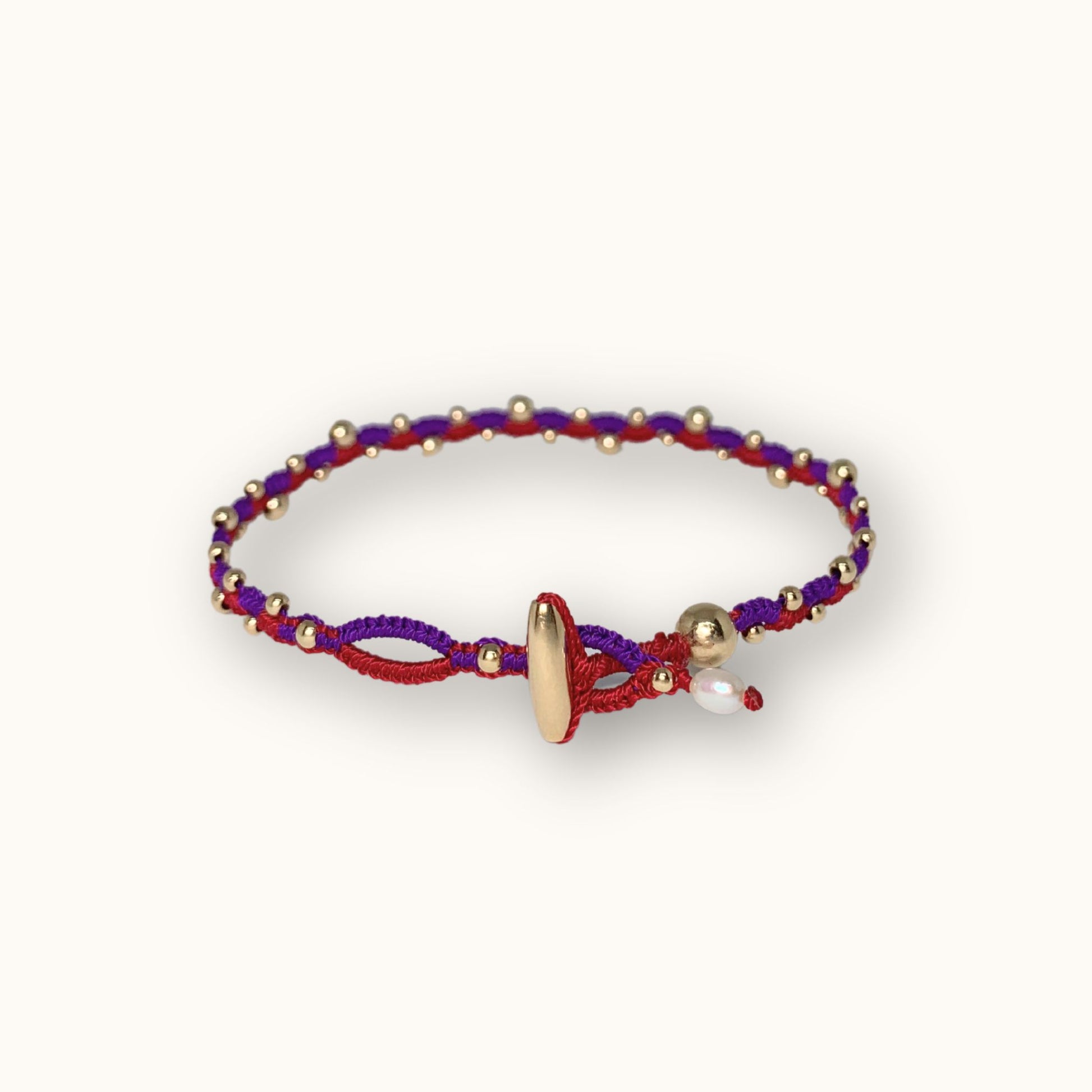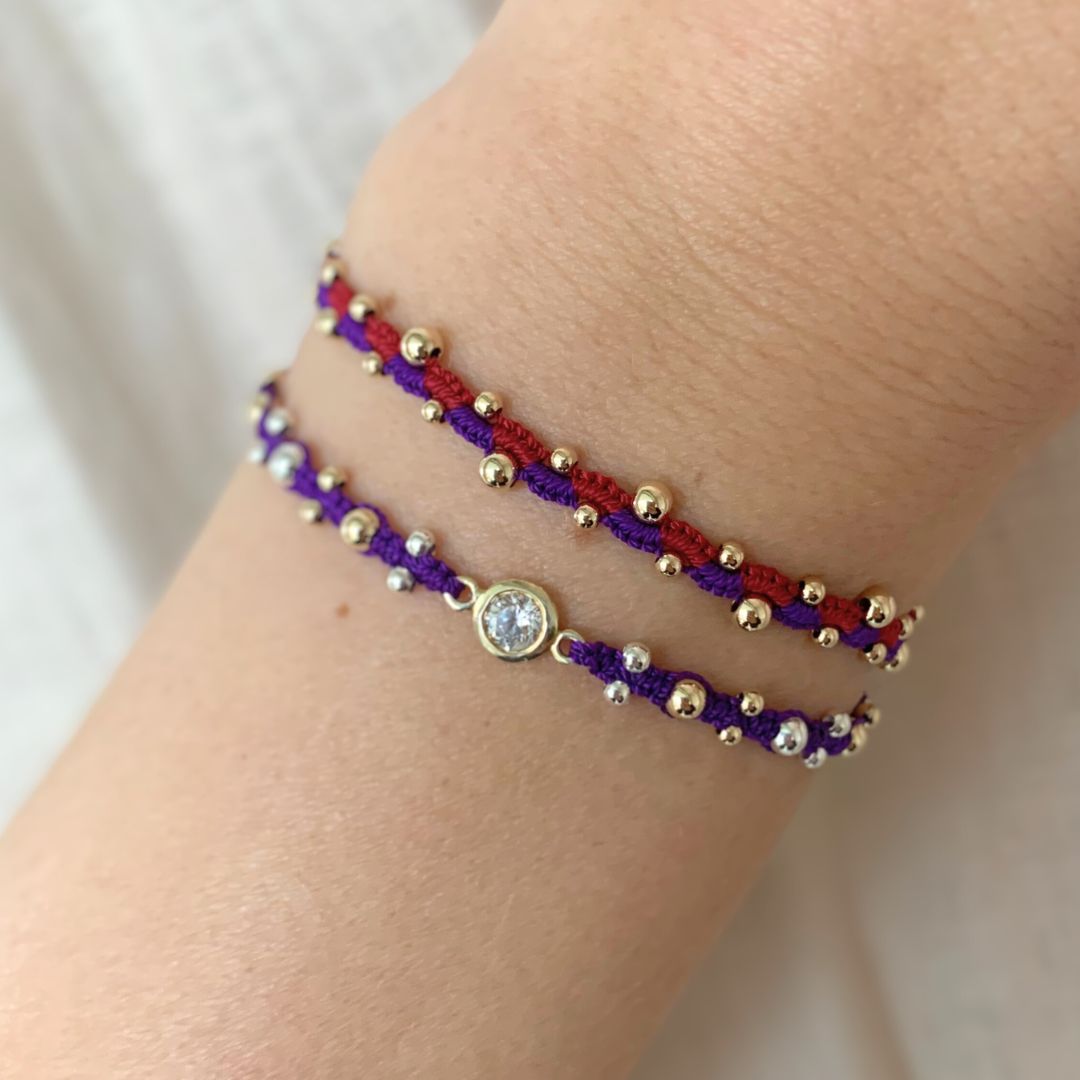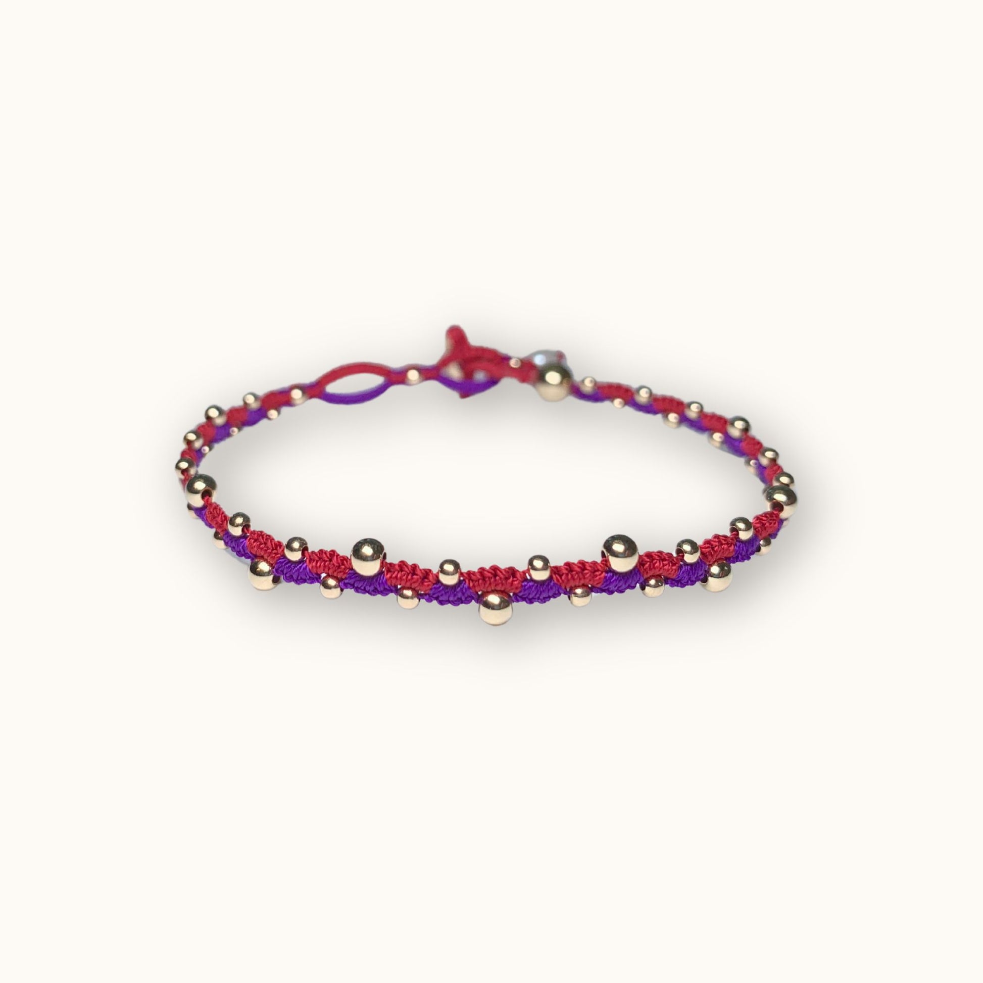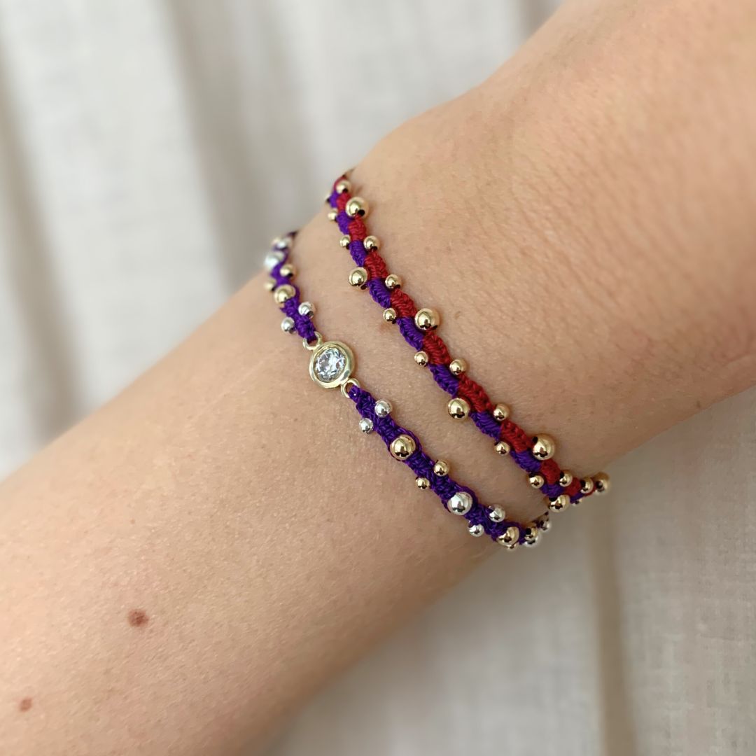 Introducing the stunning "The Wave Combo Bracelet" in the color red purple" - a mesmerizing fusion of vibrant colors and elegant design. Crafted with meticulous attention to detail, this bracelet features a captivating wave pattern, intertwining rich hues of red and purple accented with shimmering gold-filled balls.